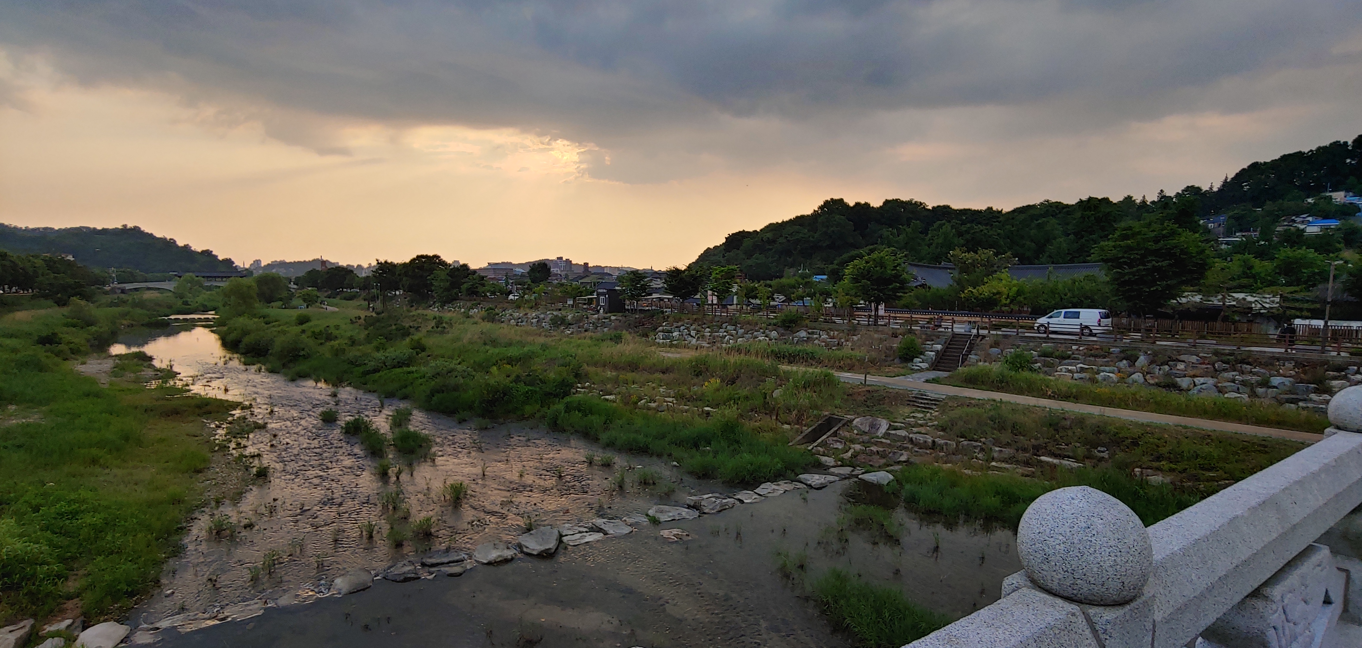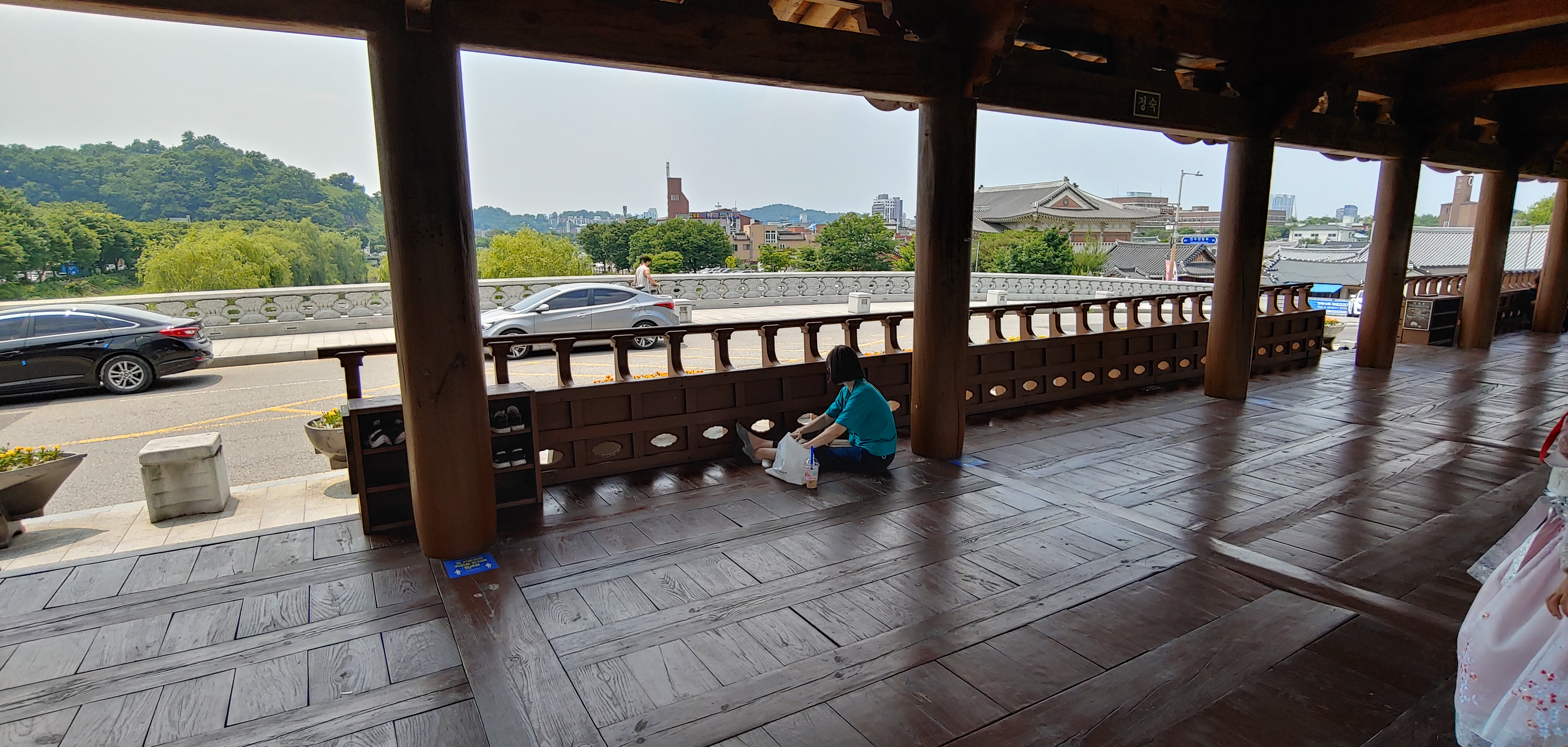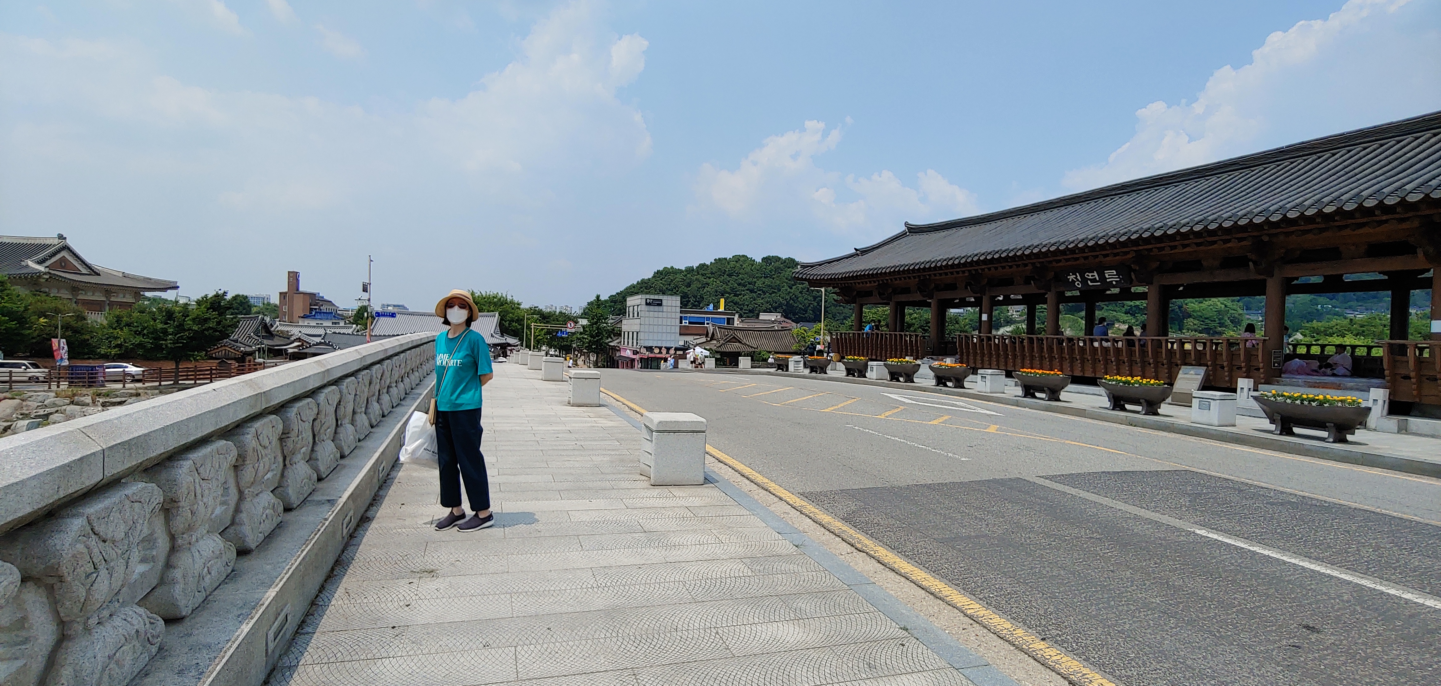 식사대신에 빵을 사들고 전주시내로 돌아와 강변과 한옥마을을 둘러보며 시간을 보냅니다.