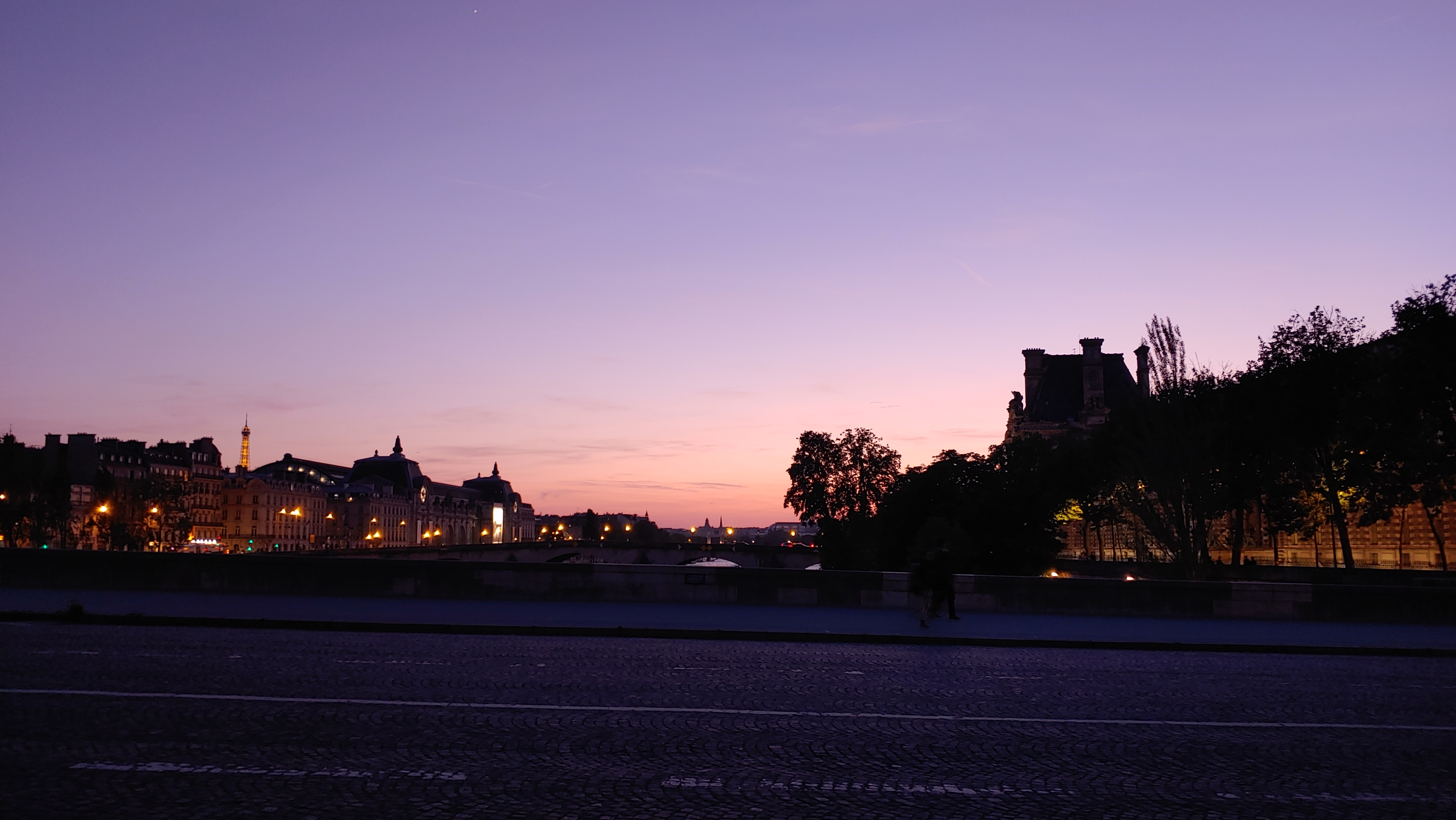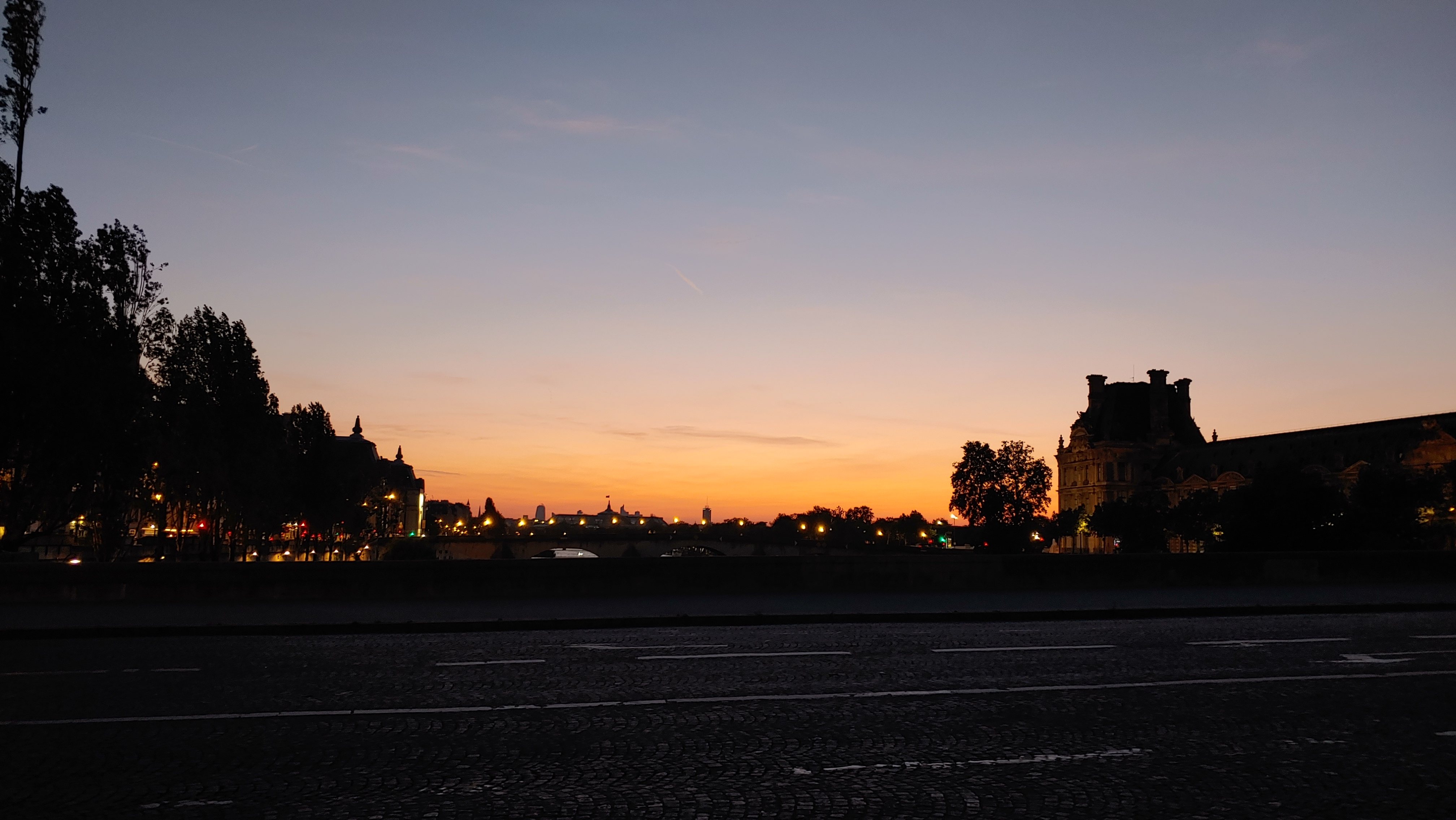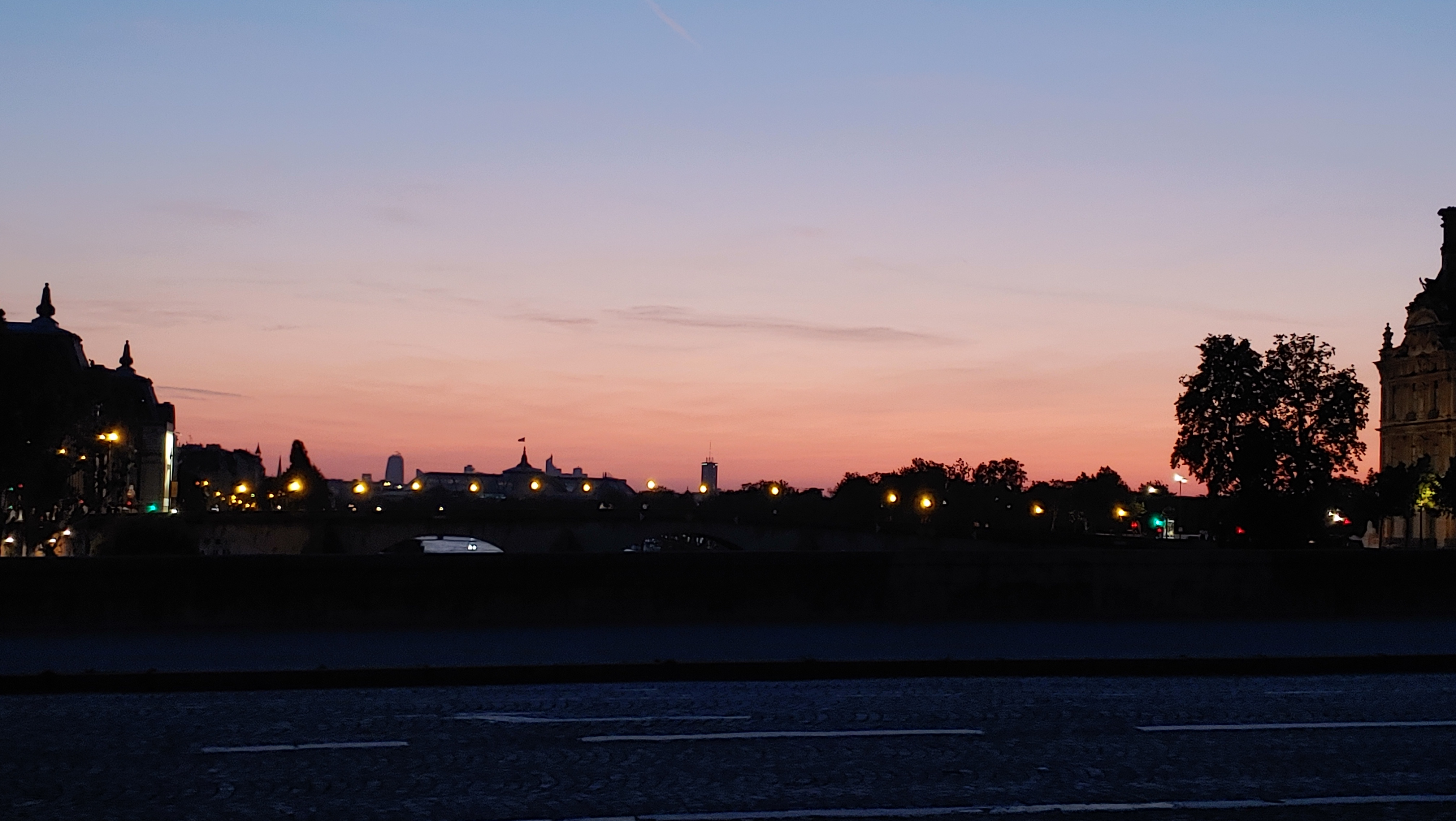 즐겁게 식당을 떠나 아름다운 파리의 밤거리를 산책합니다.