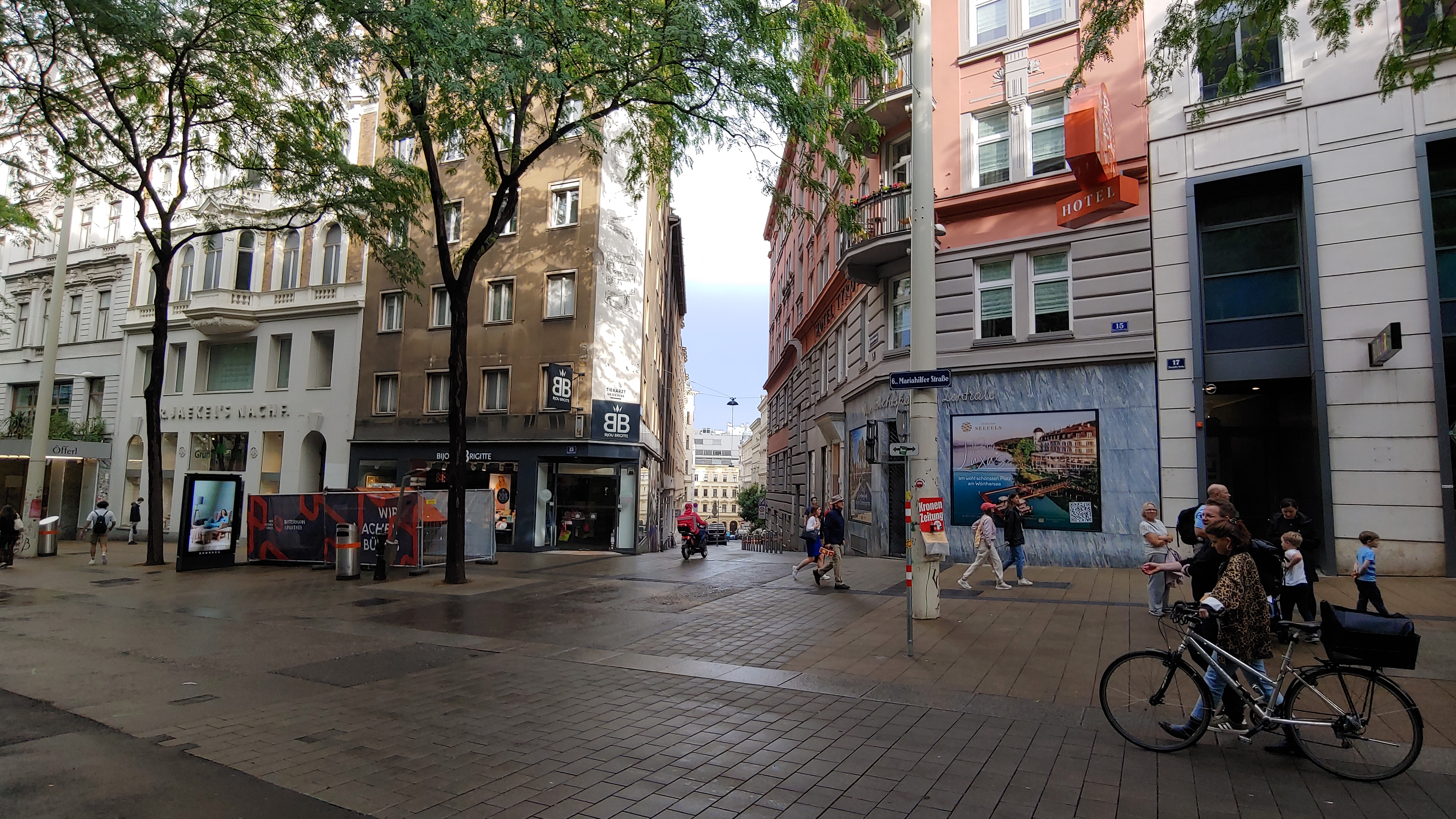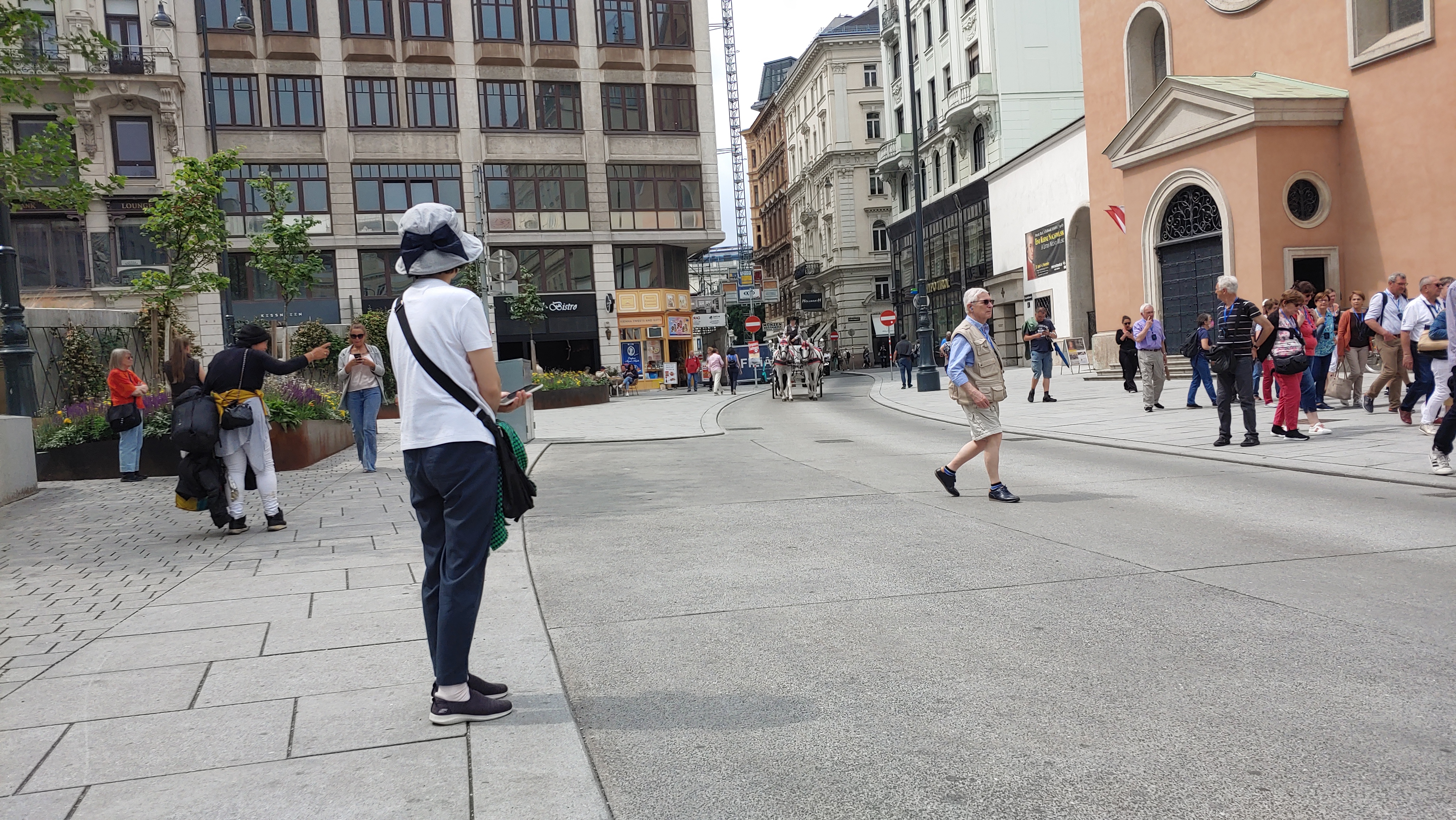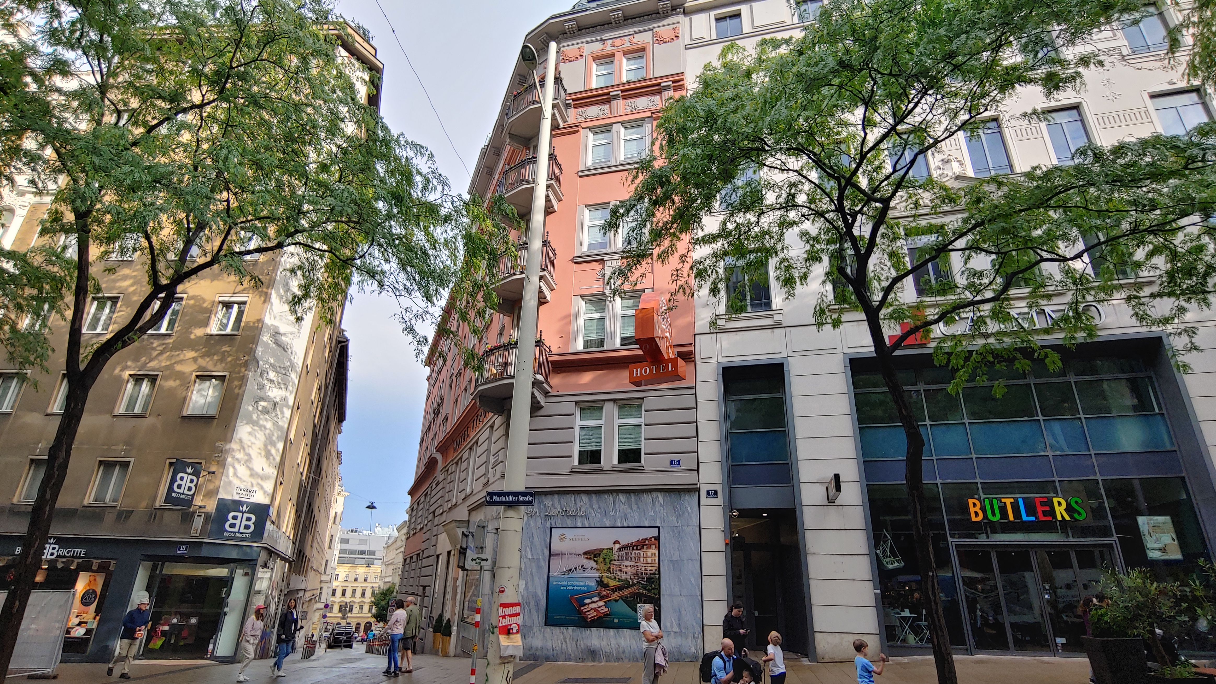 원래 예약했던 레스토랑의 최근메뉴가 우리가 예약했을 때와 달라져 우리 취향의 메뉴가 아니어서 예약을 취소하고 급히 찾은 다른 레스토랑에 예약대기를 넣어 두었는데 응답이 없습니다. 포기하고 18년전 3개월간의 유럽여행중 우리가 비엔나에서 묵었던 호텔을 찾아 추억여행을 하기로 합니다. 근데 의외로 지금 묵고 있는 호텔에서 겨우 6분 거리에, 그것도 우리가 오늘 낮에 산책했던 젊은이들의 거리에 호텔이 있었습니다.