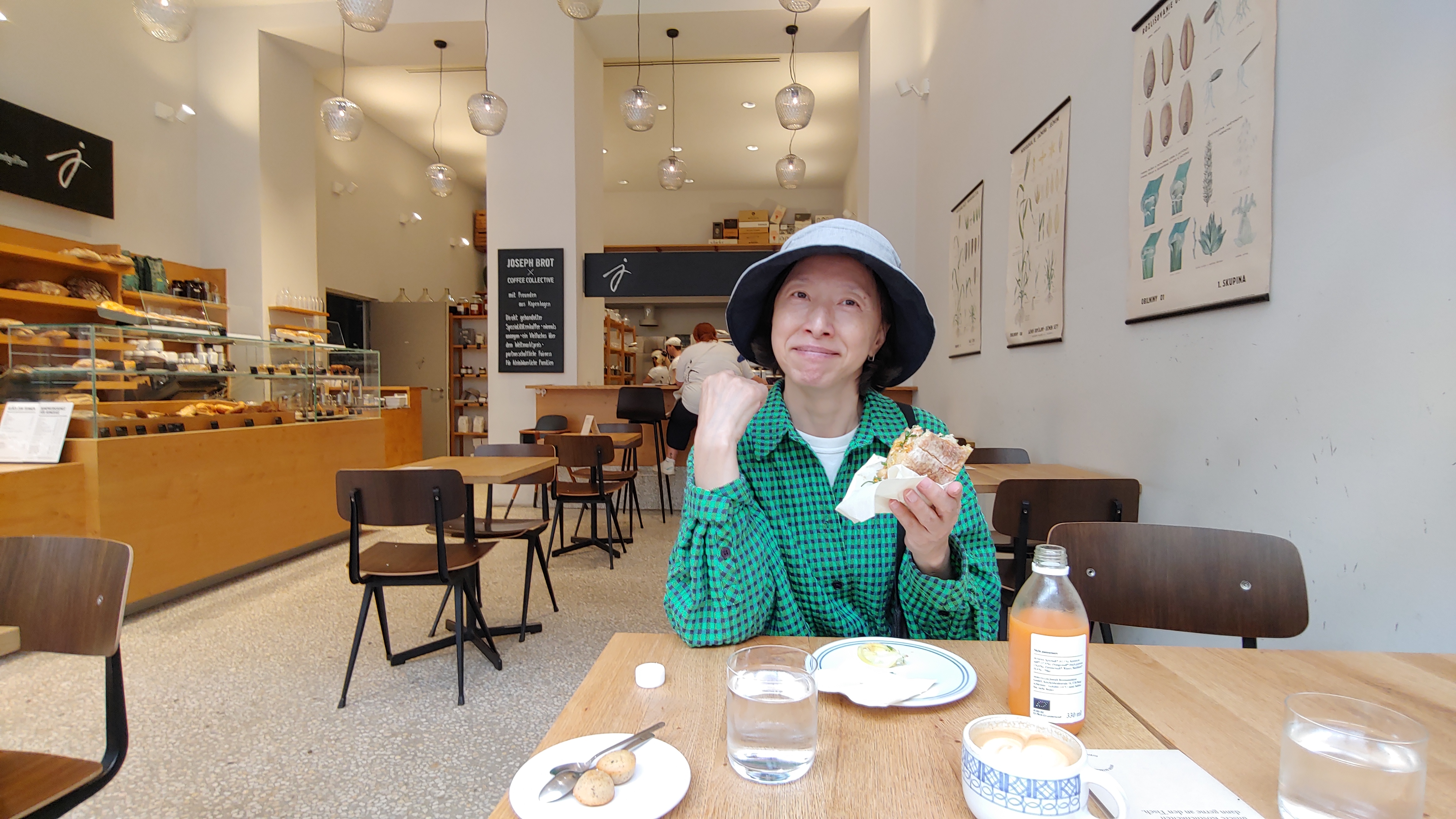둘다 배가 고파오지 않아 이 거리의 작은 빵집에서 쥬스와 샌드위치, 카푸치노로 점심식사를 대신합니다.
