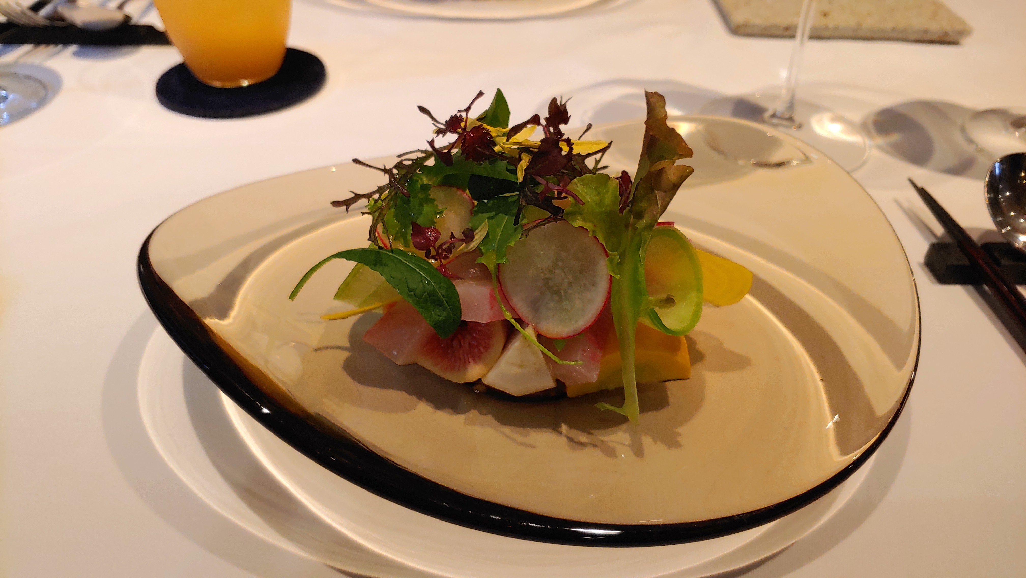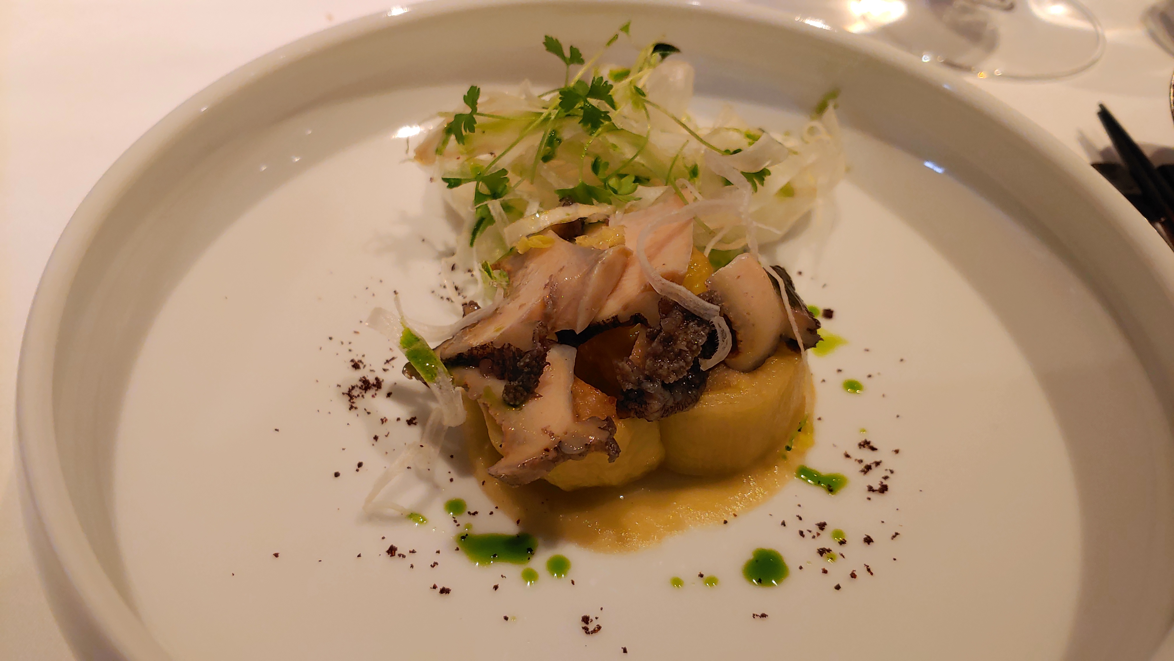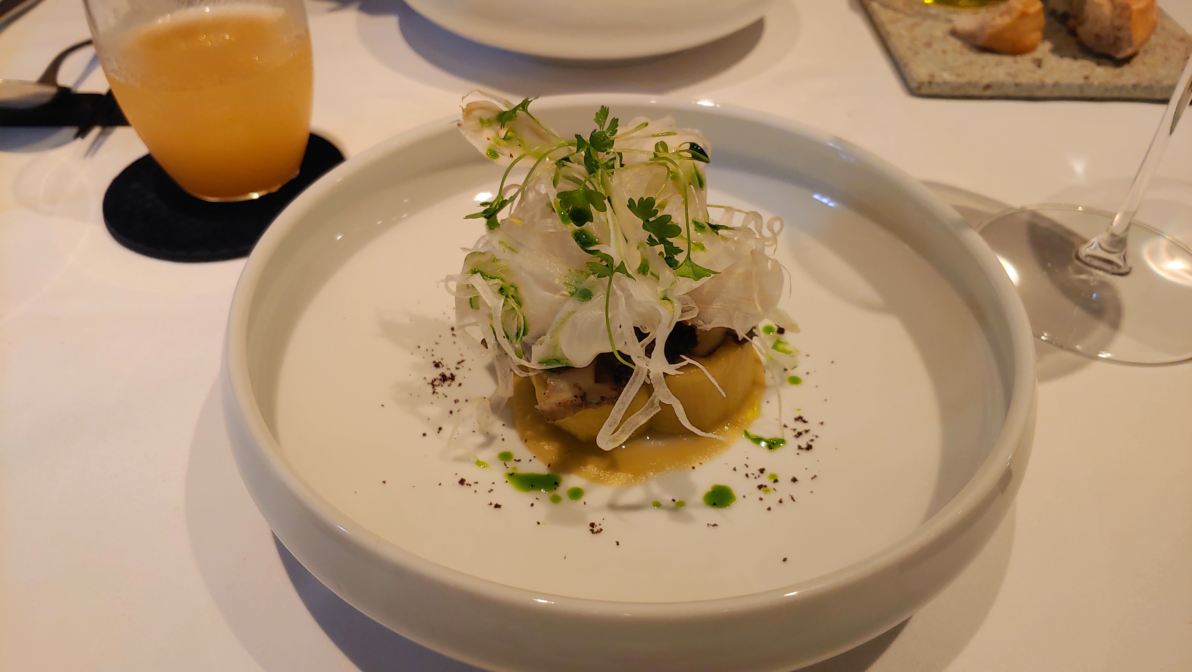 고기가 없는 해산물을 이용한 코스 요리입니다. 맛있게 즐긴 식사입니다.