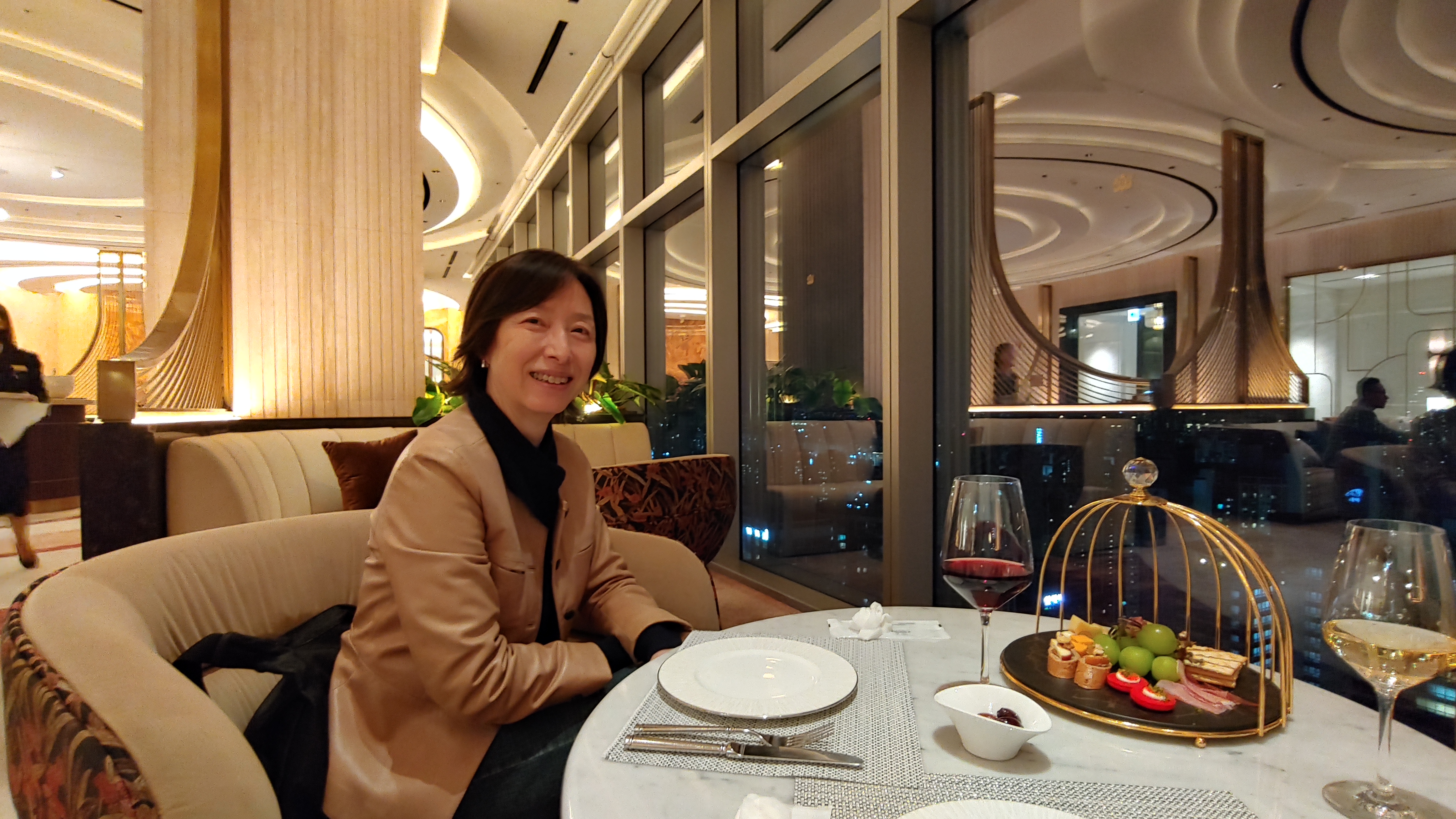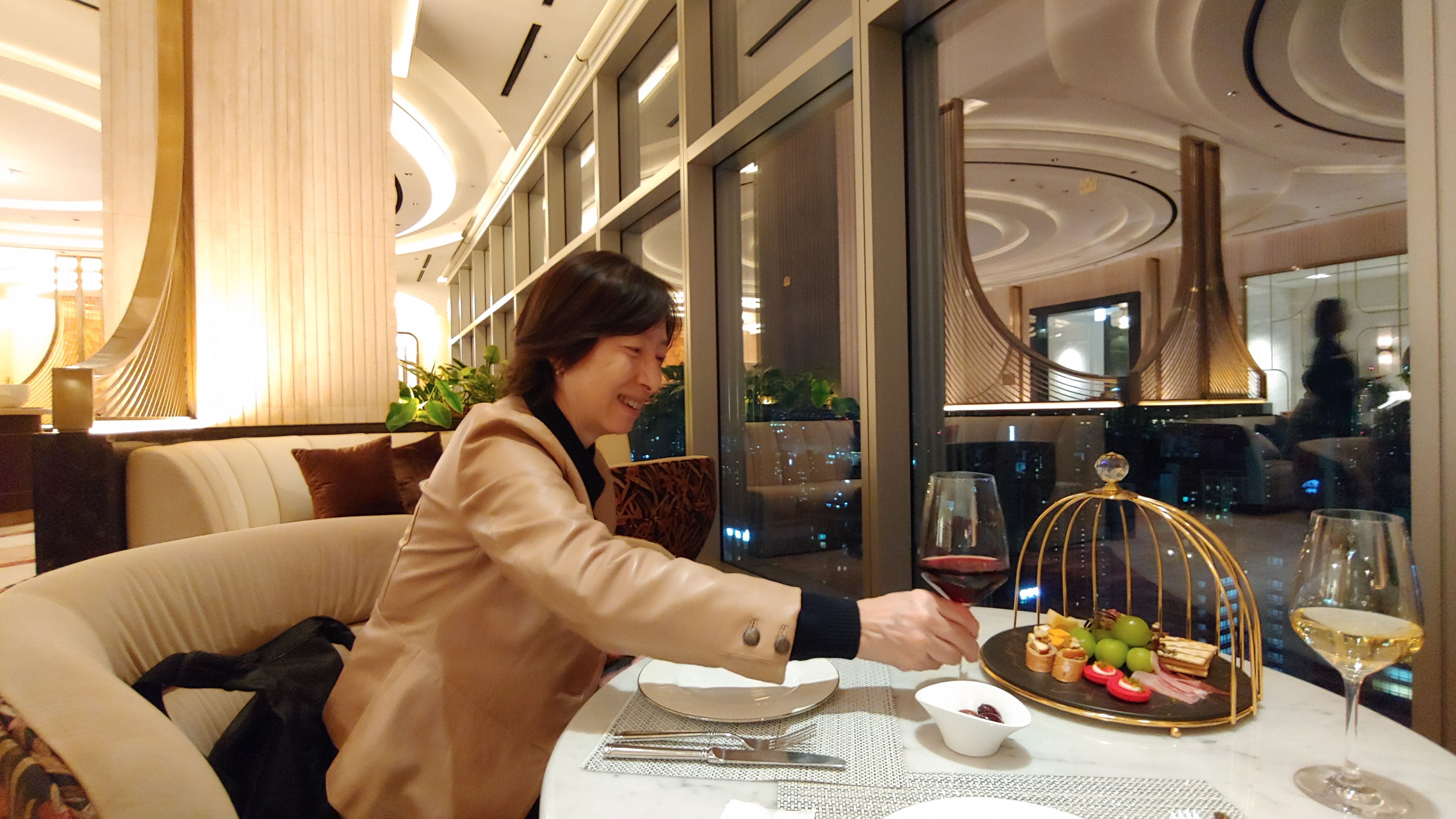 호텔로 돌아와 볼룸에서 와인을 마신 뒤 긴 하루를 마무리합니다.