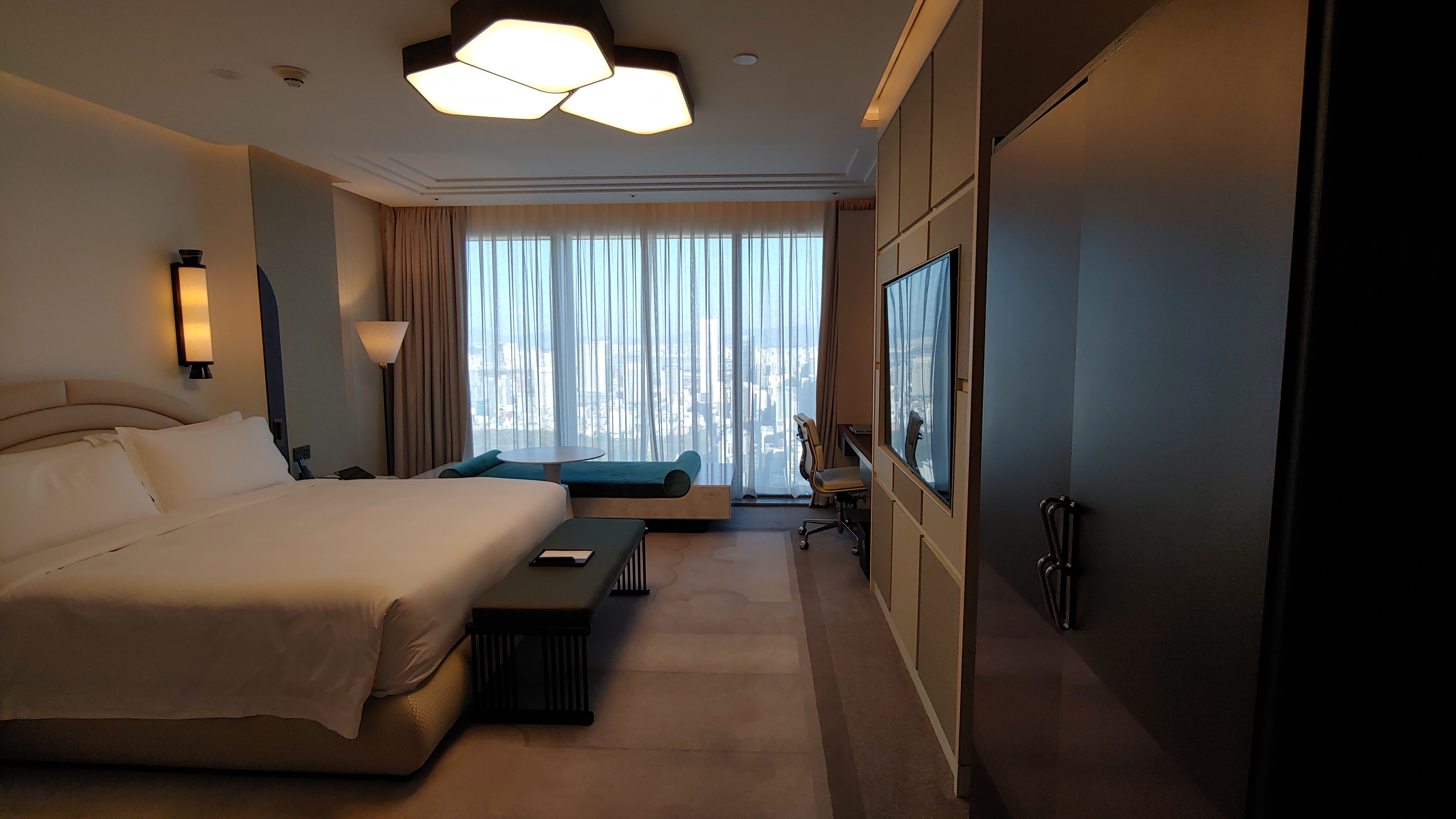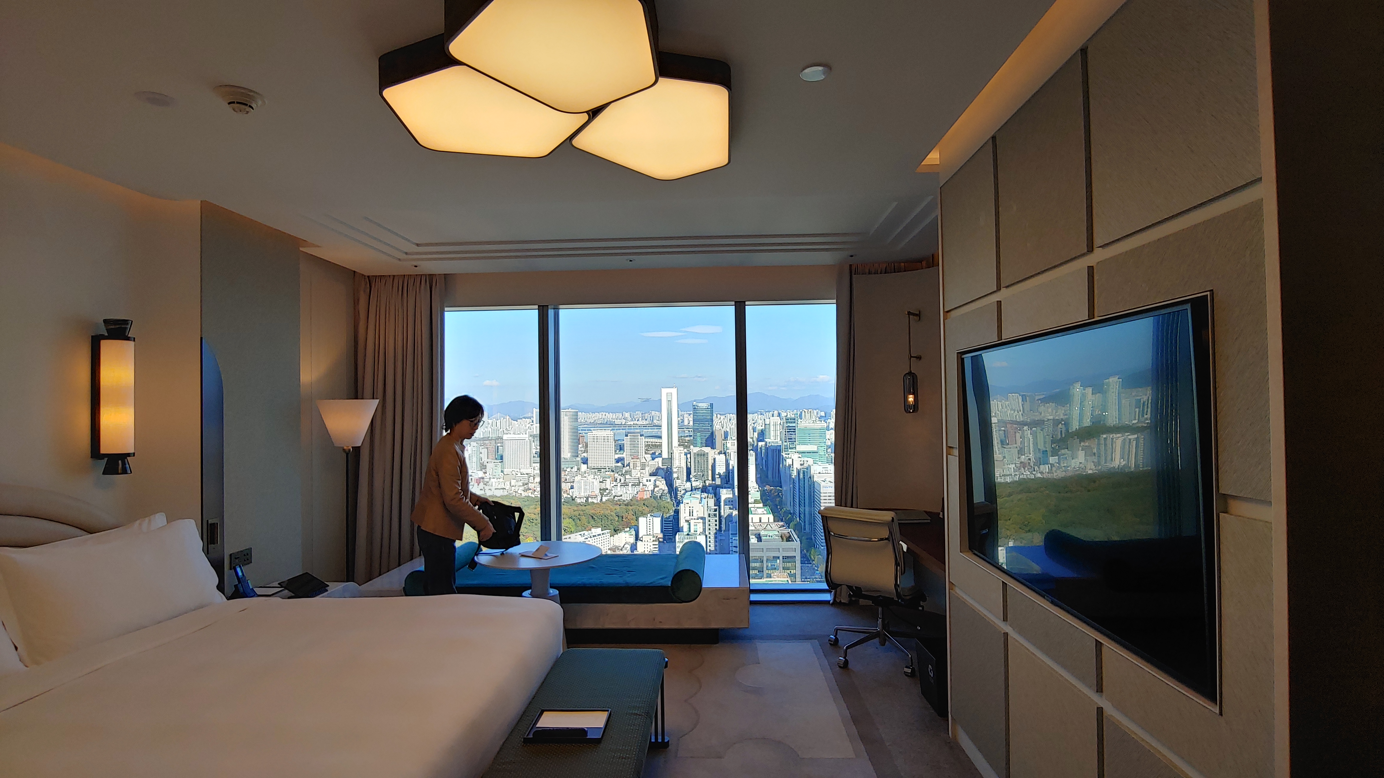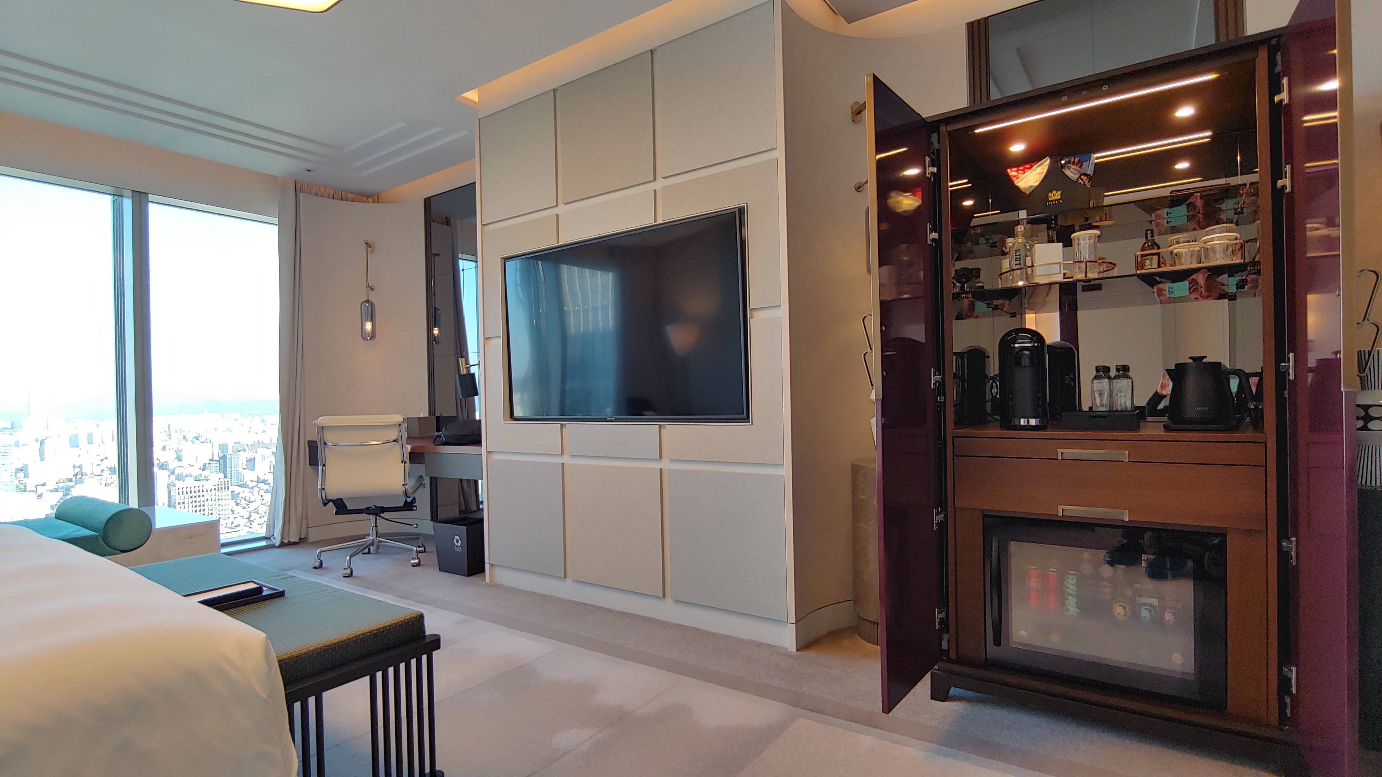 택시를 이용해 조선 팰리스 강남으로 갑니다. 첵인 후 샤워를 하고 호텔에서 제공하는 간식을 먹으며 쉽니다.