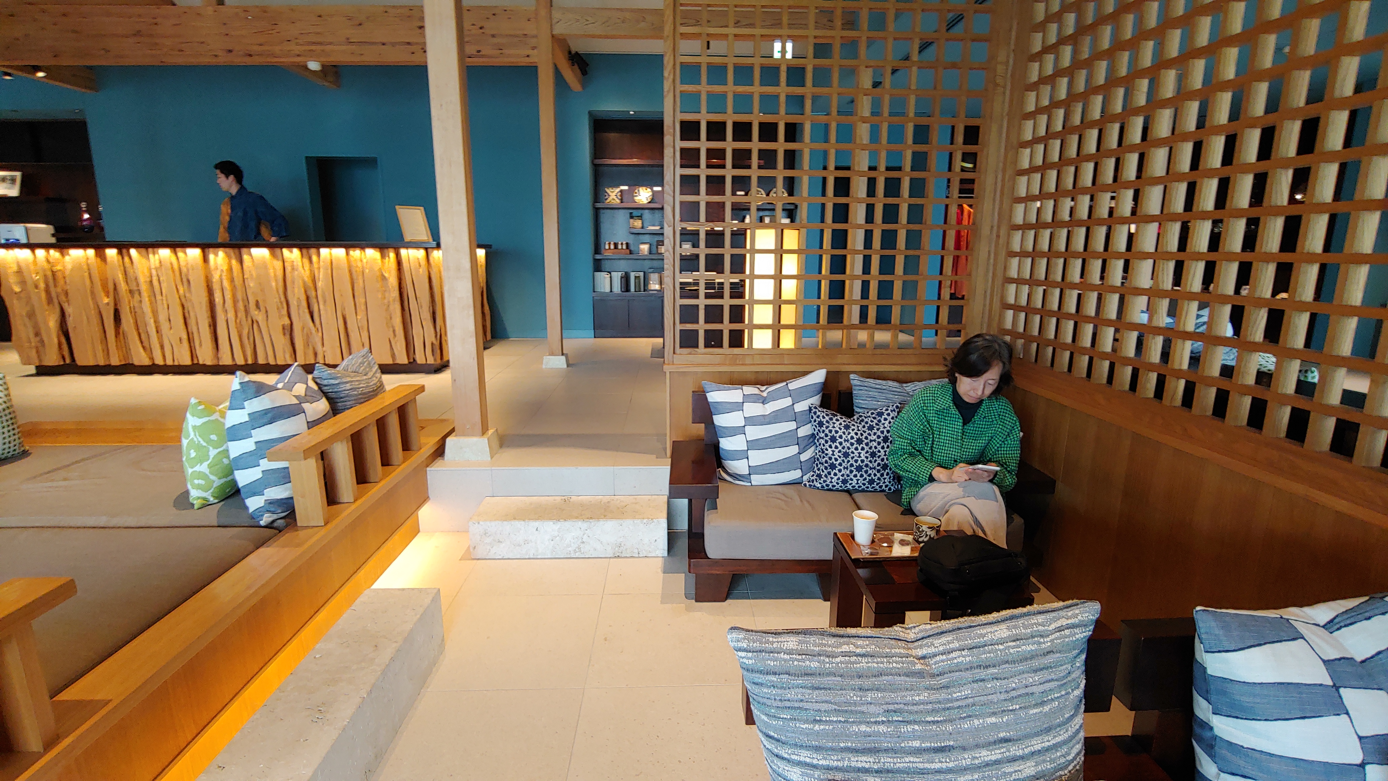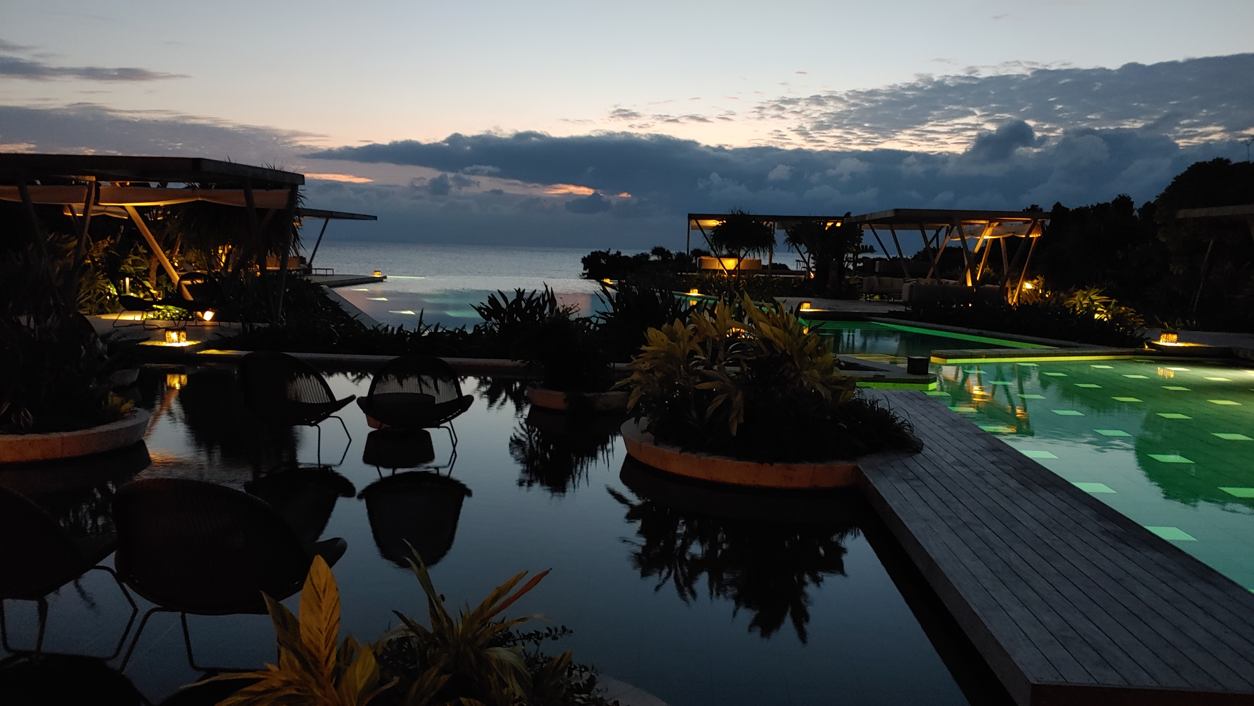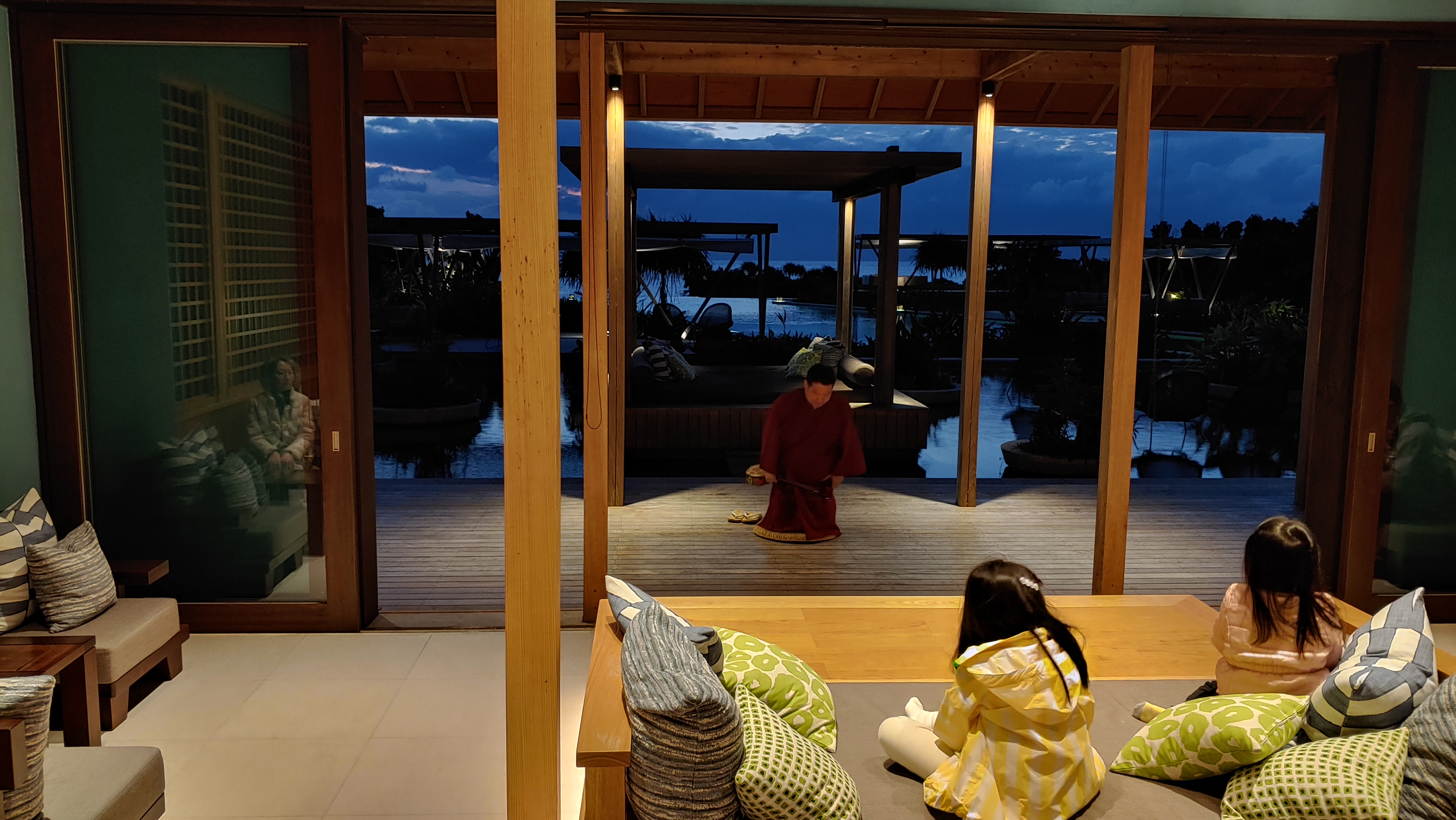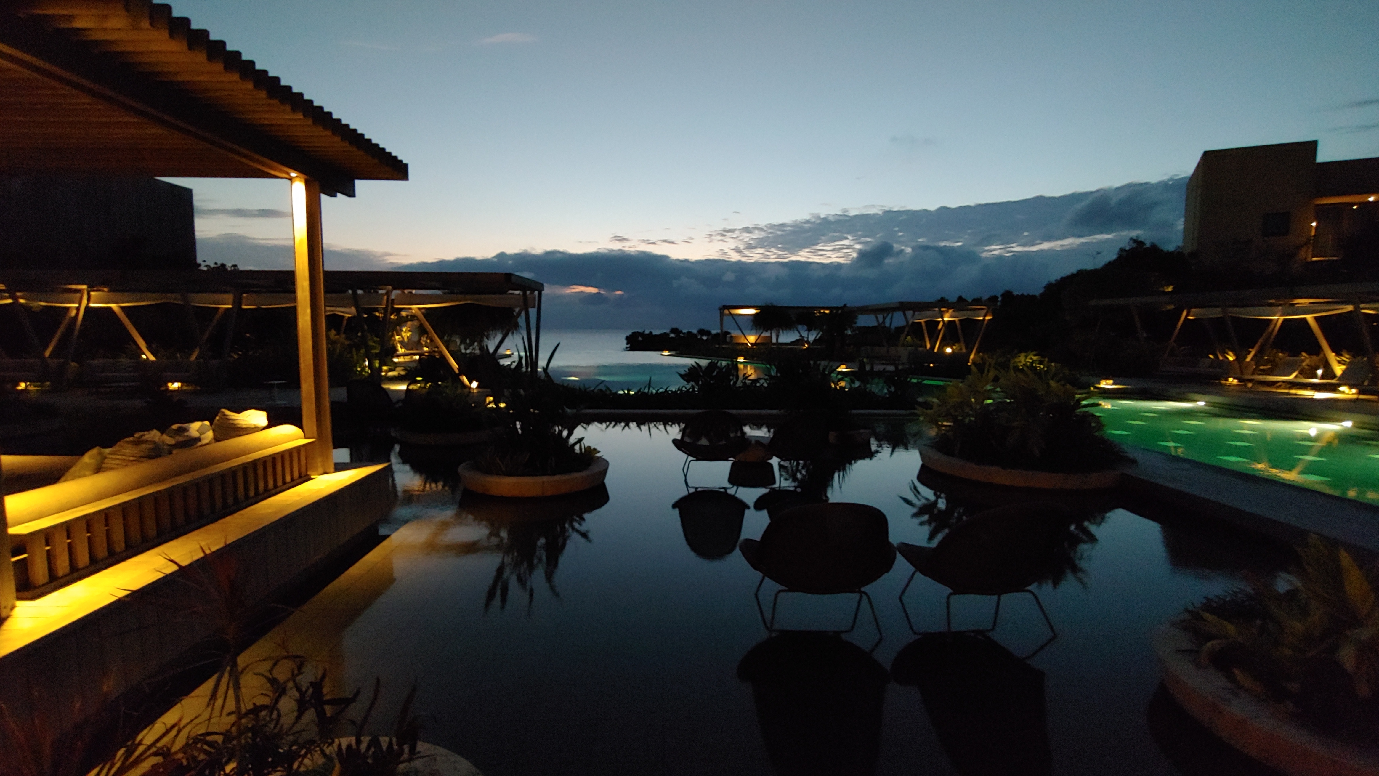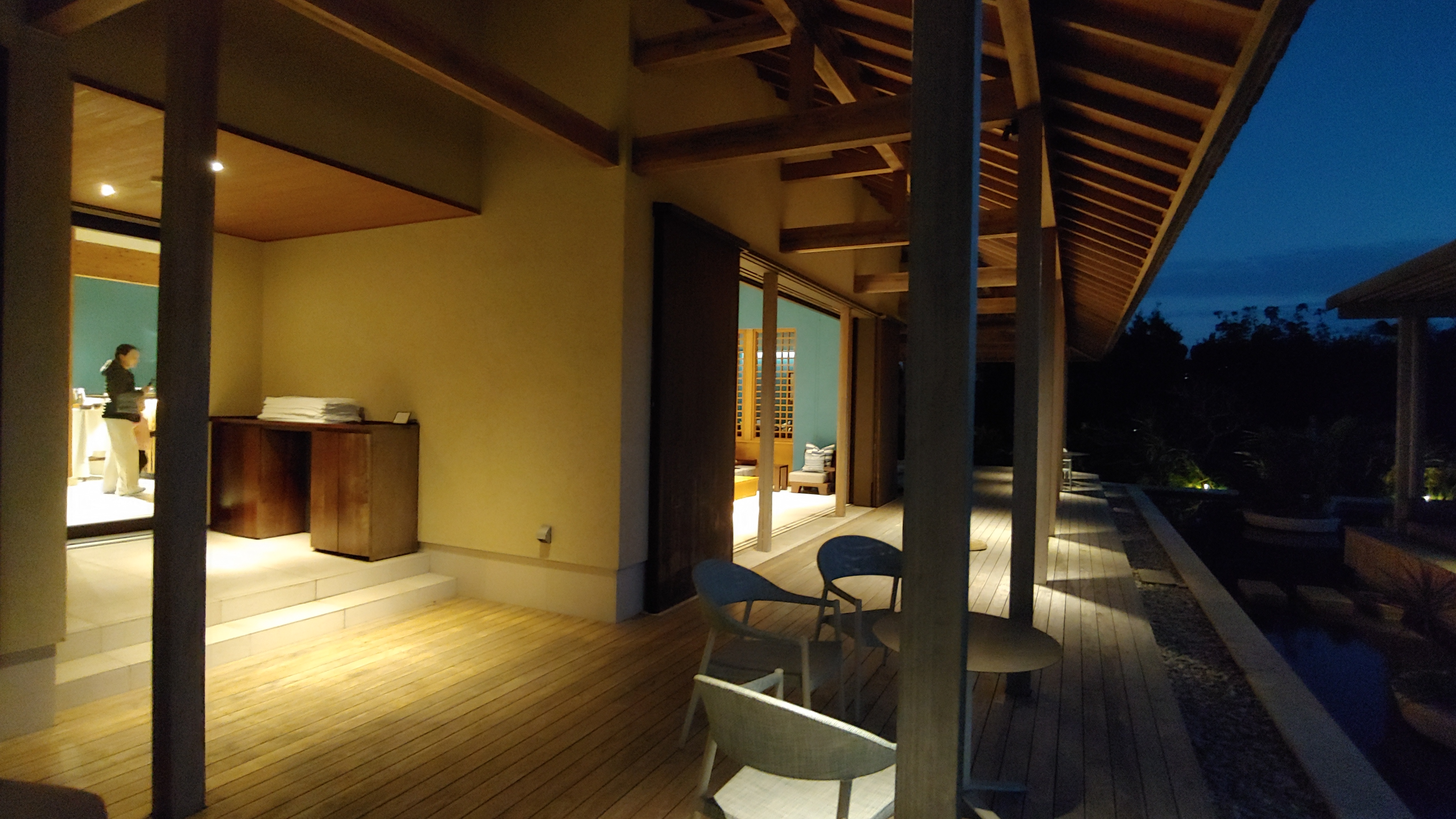 오후 해가 약간 길어지자 수영장이 붐비기 시작합니다. 호시노야의 풀에서 이렇게 사람 많은 경험은 처음입니다. 소란스러움이 싫어 방으로 돌아가 샤워를 하고는 저녁식사를 위해 외출합니다.