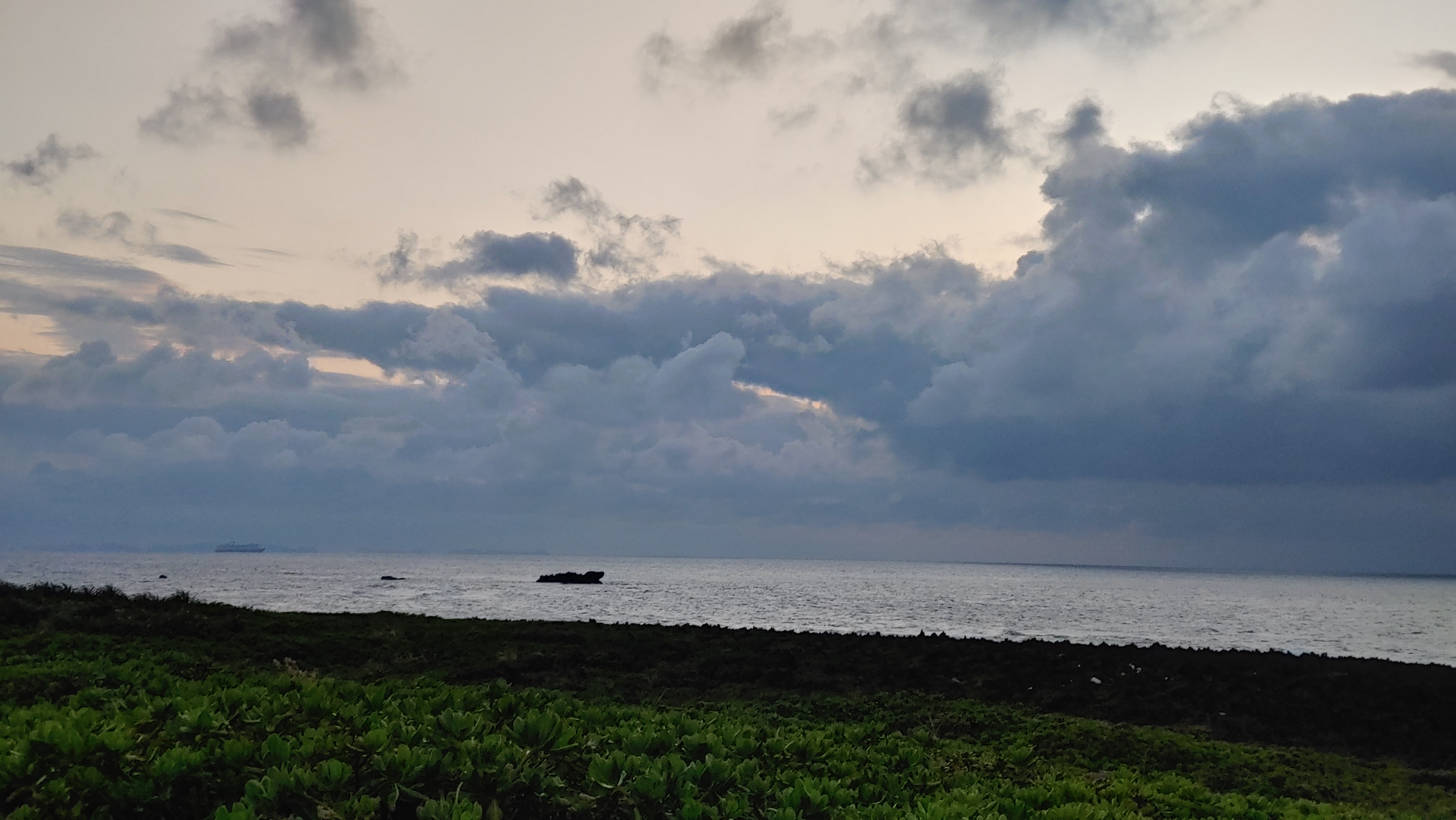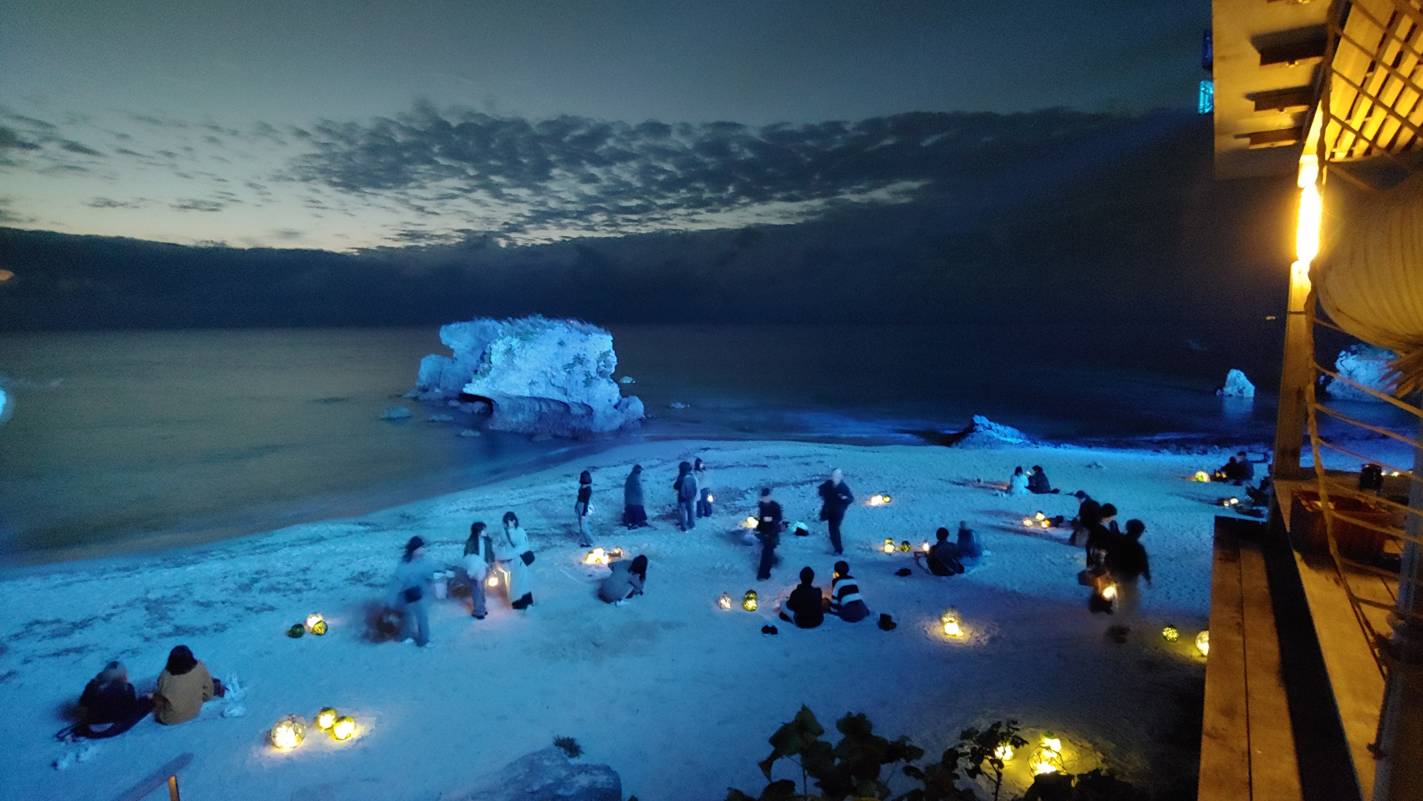평화롭게 아름다운 석양을 보며 산책하고 있는데 어떤 서양인이 일본어로 아소코니 쿠지라가 이루요 라고 우리에게 소리칩니다.